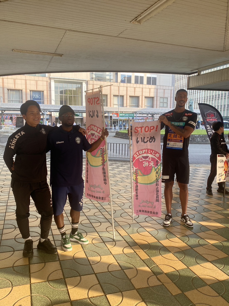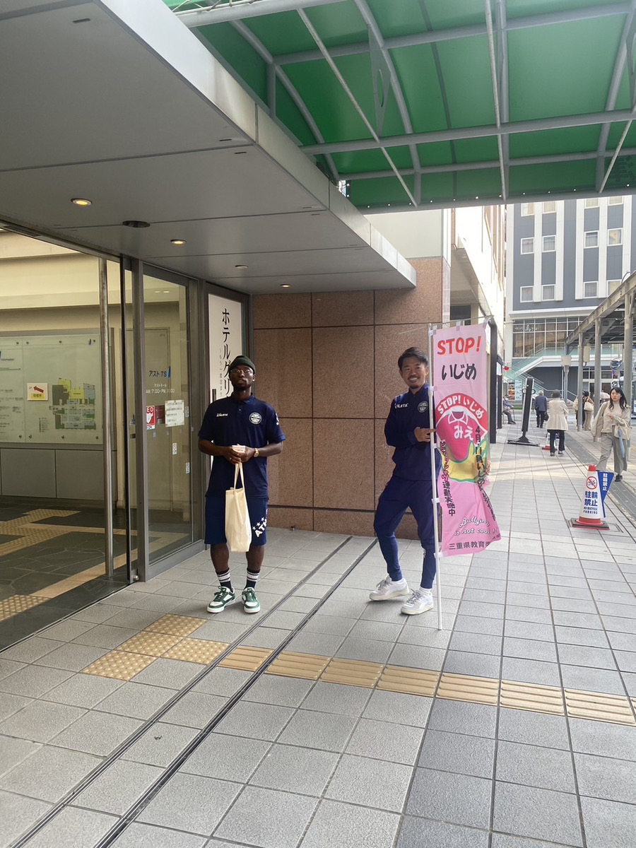 アトレチコ鈴鹿クラブは、三重県教育委員会が主催する「いじめ防止強化月間(11月)」における街頭啓発活動に、いじめ防止応援サポーターとして参加いたしました。当日は、県内の高校生や教育委員会職員とともに、近鉄・JR津駅にていじめ防止を呼びかけ、啓発物品の配布を行いました。
