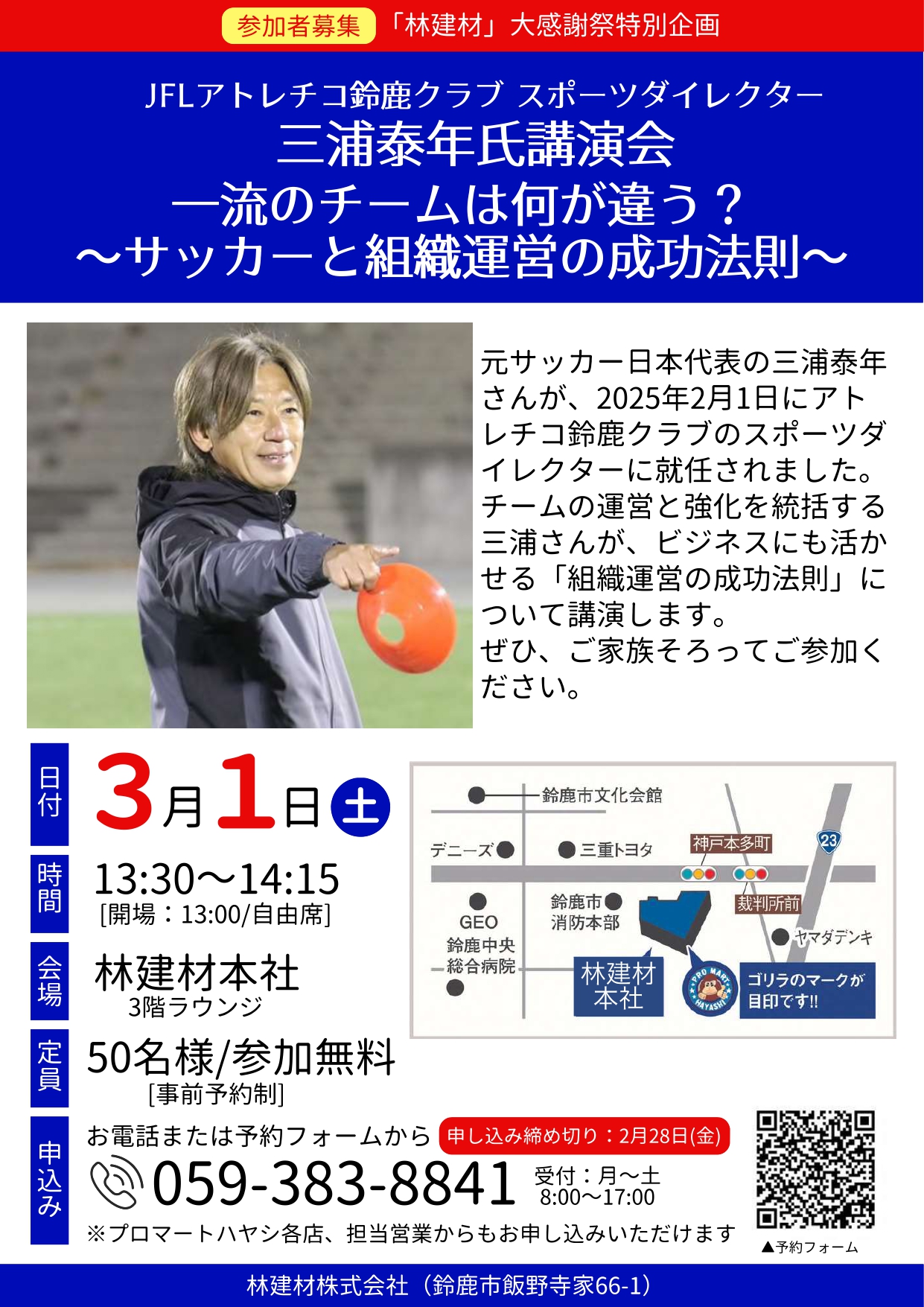 申込み:お電話(林建材様 担当窓口:059-383-8841)